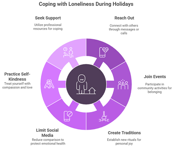 Volunteering, attending local gatherings, or joining virtual holiday activities can bring a sense of belonging and purpose.
